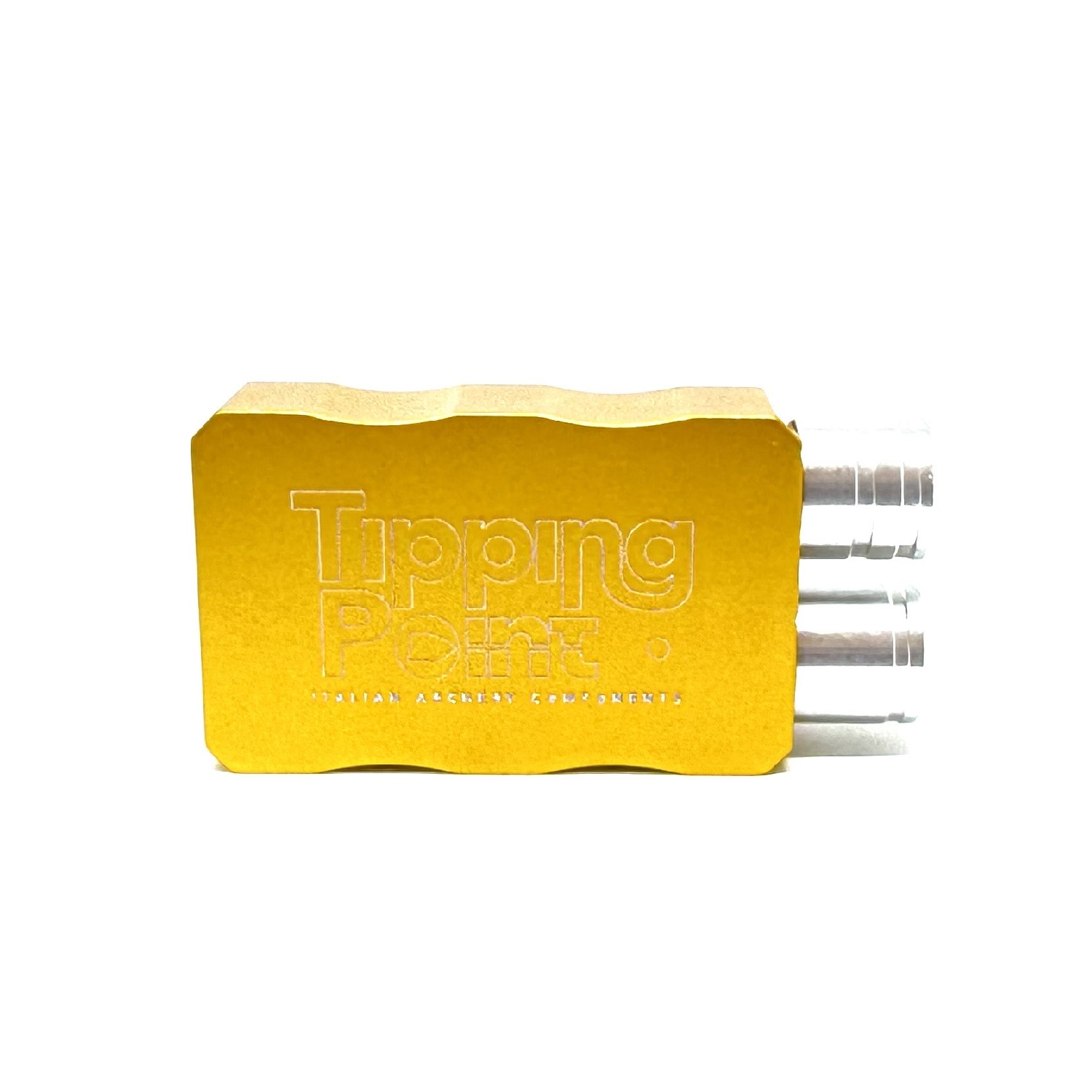 The Tipping Point universal sharpener in anodized aluminum is an essential accessory for all archers who use wooden arrow shafts.
